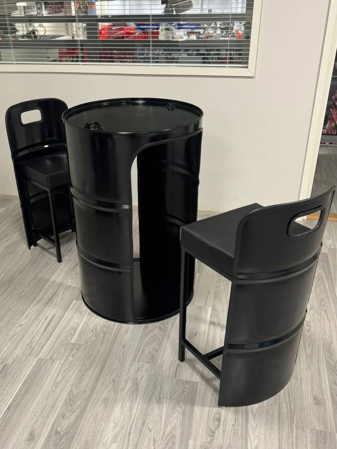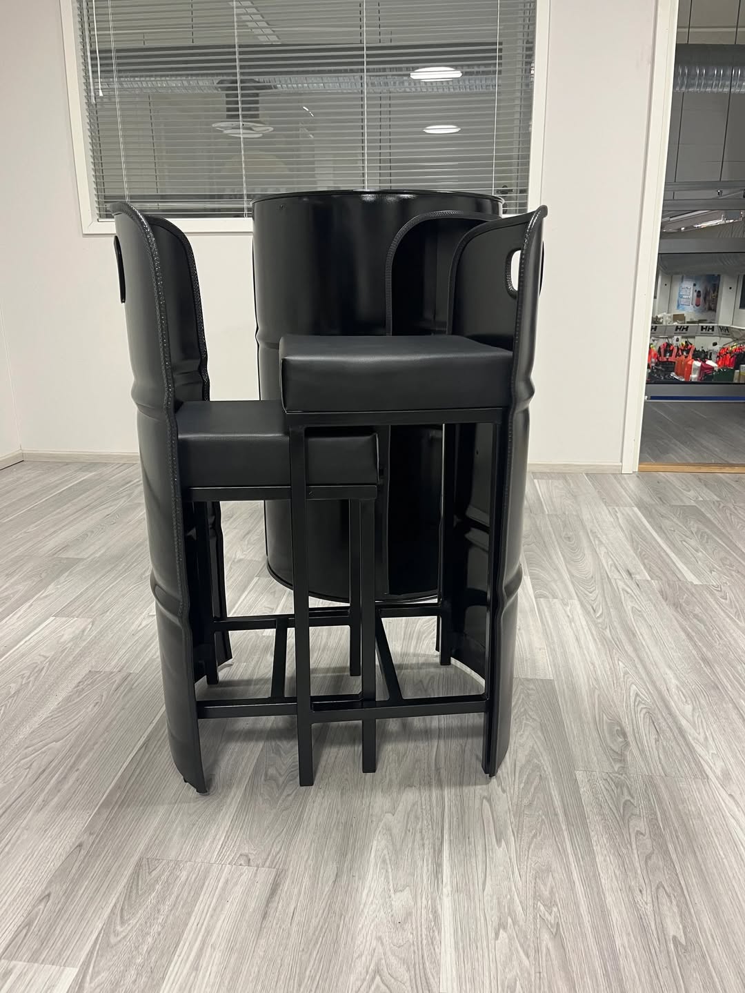 Minimal ve güçlü tasarımıyla dikkat çeken bu endüstriyel varil masa takımı, siyah mat boyası ve sağlam metal yapısıyla uzun ömürlü kullanım sunar. Ergonomik oturum sağlayan minderli sandalyeleri sayesinde hem konforlu hem de estetik bir deneyim sağlar.